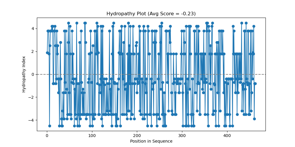 Ever since a lesson with one of my great professors (Mdme Le Tilly) where we tediously had to make hydropathy graphs by hand(ish) with Microsoft Excel, I’ve wondered how easy it would be (and how impressed my girlfriend would be) if I made a small program to automate the process using Python. I’ve seen some bioinformatics tools on the Expasy website that could already do a hydropathy analysis using a protein sequence, so this is nothing groundbreaking, but I gave it a go anyway.